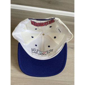 This vintage Valvoline Performance Team Members hat is a must-have for any racing fan. The solid white hat features a blue bill with the Valvoline logo embroidered on it. The hat is made of wool and acrylic, making it lightweight and perfect for any season.