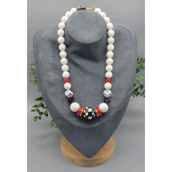 Vintage Van Allen White Red Casino Dice Vegas Beaded Choker Necklace N1A