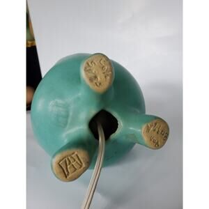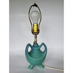 Van Briggle pottery lamp, 3 handled urn shape with 3 feet, blue matt glaze, feet marked AA, Van Briggle, Colo. Spgs., in excellent condition, original butterfly shade in excellent condition, 16"H from bottom of base to top of lamp shade. Works! This beautiful lamp has been in my Mom's house for 30 years. She's a beauty and she has been used and loved. She is, as is. Let me know if you have questions or need more pictures.
