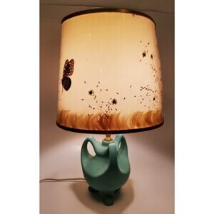 Vintage Van Briggle Blue Lamp with Wildflowers Butterflies Lampshade w/ Stamp