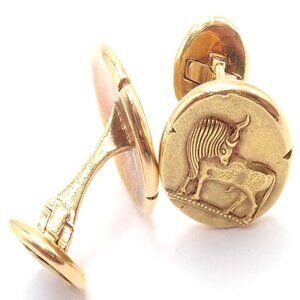 Vintage! Van Cleef & Arpels G. L'Enfant 18k Yellow Gold Zodiac Taurus Cufflinks