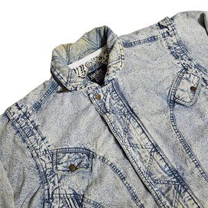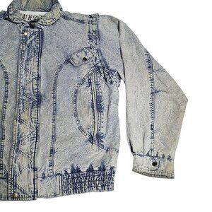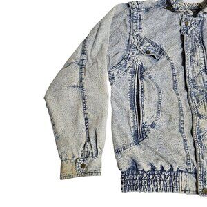 Vintage Van Cort Denim Jacket M Acid Wash Distressed Stained Thrashed Bomber