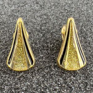 Vintage Van Doran Genuine Diamond Dust Clip On Earrings Gold Tone/Black Retro Triangle Drop. Excellent preowned, vintage condition.