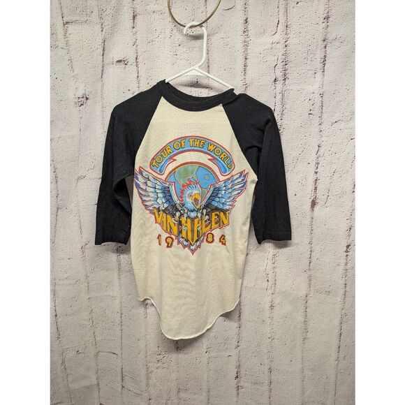 Vintage Van Halen 1984 Tour baseball shirt 3/4 Sleeve S Small 80's Vtg *Flaws