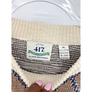 Vintage Van Heusen 417 Argyle 100% Cotton Sweater Size XL Grandpa Retro Academia