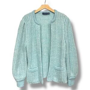 Vintage Van Heusen Cardigan Chunky Knit Open Front Pockets Pastel Cottage Womens Size Medium