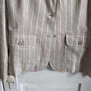 Another well maintained vintage outfit: a linen suitcoat and matching pants from Van Heusen. It's a lightweight, gorgeous ensemble. The pants are perfect, the jacket is just too small for me! Jacket is a L and pants are a 14.
