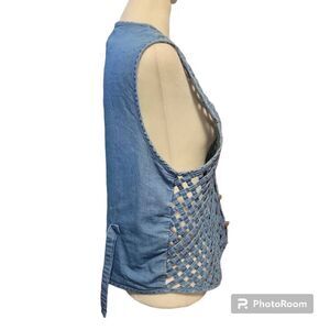 Vintage Van Heusen Medium Wash Lattice Woven Vest with Toggle Buttons Women's Si