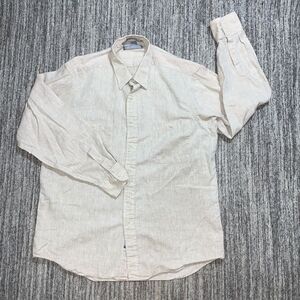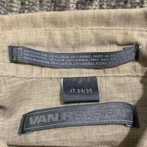 Vintage Van Heusen Men's Size 17 34/35 Tan Linen Blend Long Sleeve Dress Shirt