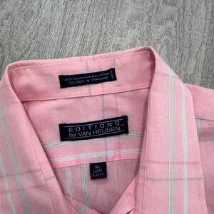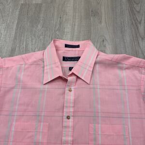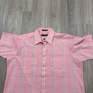 Vintage Van Heusen Short Sleeve Button Shirt Men's XL Pink Plaid Preppy Boxy 90s