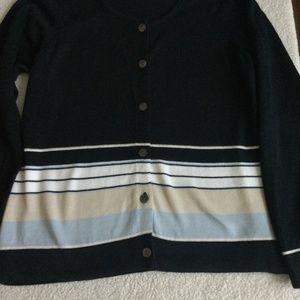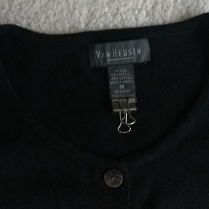 Vintage Van Heusen Striped Cardigan Sweater Black - Sz Medium