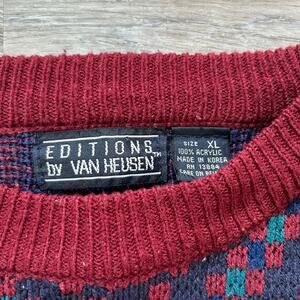 Vintage Van Heusen Sweater XL Made in Korea Geometric Knit 80s Grandpa Core