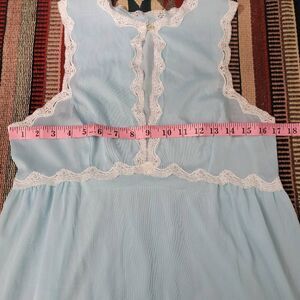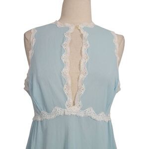 Vintage Van Raalte Pastel Blue Baby Blue Full Slip Dress, high round neck with button closure, sexy Keyhole bust, sleeveless, Lace Trim all over, semi see through, all nylon.