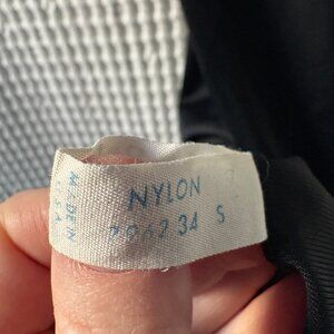 Sleek, minimalist vintage black slip from Van Raalte. Made in the United States. Likely 1950s. The company patented the fabric Opaquelon, which is a type of nylon that is very smooth and silky to the touch. Adjustable straps. In excellent condition. Wear it as a slip or a slip dress. It's gorgeous. Size 34. Flat, it measures about 17 inches pit to pit, and it's roughly 40 inches long from the top of one strap the hem.