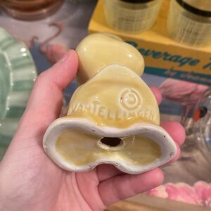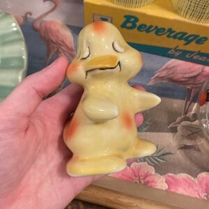 Vintage Van Tellingen duckling salt and pepper shaker, likely from the 1940s. These shakers are known for their hugging design, where one duck partially wraps around the other. This listing is for one shaker. 4” tall. No noted flaws.