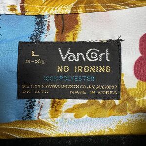Vintage Vancort Mens Hawaiian Button Up Shirt L No Iron Luau Surf Beach Retro