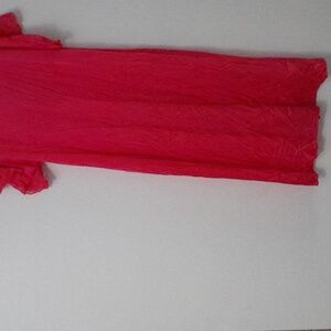Vibrant pink gown with lace trim. One upper button and open front. Flowing and stylish