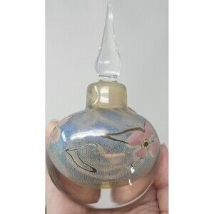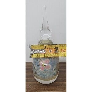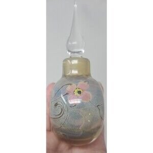 Vintage Vandermark Blue Art Glass Floral Perfume Bottle Signed And Numbered 5.5"