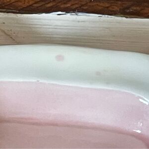 Great vintage condition! Found a couple of specs of pink paint on the white heart which appears to be before the glazing process as it is not on top. Two very very minor chips in the paint on the rear bumper over the car, see close-up pictures.