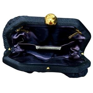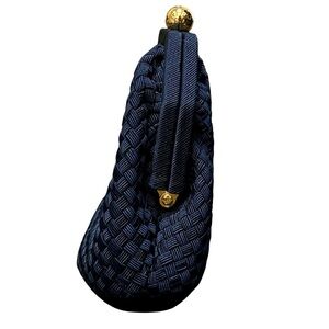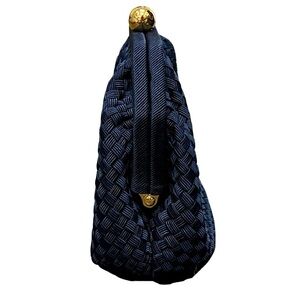 Vintage Vanessa Navy Woven Satin Evening Bag with Gold Clasp