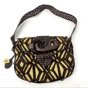 Vintage Vanessa leather and fabric shoulder bag