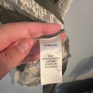 Vintage Vanity Button Down Sleeveless Top w/ Lace Panels and Back in women's Size Large. Muted green with off-white / cream color lace. Top is in good used condition with no flaws or stains other than some wash wear. Pit to pit measures approx 18.5 in across & length from top of front shoulder to bottom hem measures approx 24 in. Please see close-up pictures for condition details. Collared tank top. Y2K. Early 2000s.