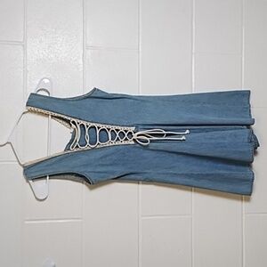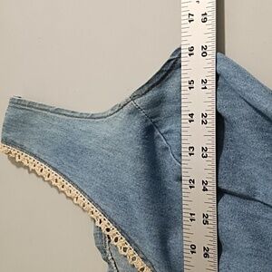 Vintage Vanity Deadstock 100% Cotton Lightweight Denim Skort Corset Back Cream Crochet Lace Trim