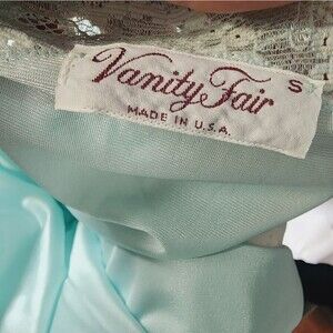 Vintage Vanity Fair 60s Peignoir set mint lace puff sleeve maxi down robe Small