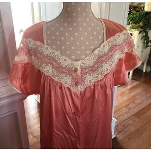 Vintage Vanity Fair Apricot Pink Pajamas Nylon & Lace Short Sleeve Medium U.S.A.