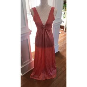 Vintage Vanity Fair Apricot Sexy Plunging Neckline Nightgown Lingerie Nylon 36