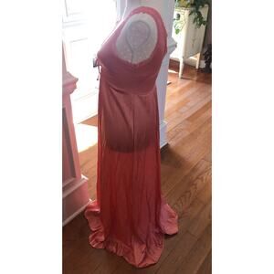This machine washable gown is perfect for any season, whether it's winter, summer, fall, or spring. It is a beautiful addition to any woman's wardrobe, and its unique features include a length of 54 inches and armpit to armpit measurements of 17 inches. The gown has a classic, gothic, and grunge design, with a touch of 80s and princess themes. It is a USA-made product and is in excellent condition.