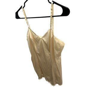Vintage Vanity Fair Beige Nylon Camisole Top Adjustable Straps Lace Trim Size 34
