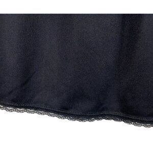 Elegant Vintage Vanity Fair half slip in size L/42. Crafted in 100% nylon with a delicate black lace trim and a sultry side slit. Provides an excellent fit and comfort.
