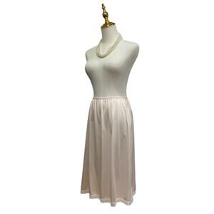 Vintage Vanity Fair Blush Nylon A-Line Half Slip Skirt with Lace Trimmed Hem, Elastic Waist