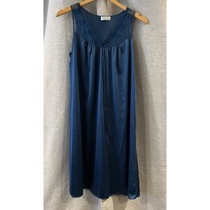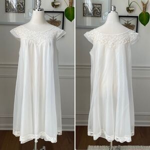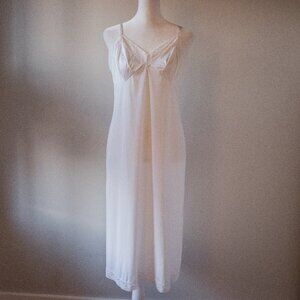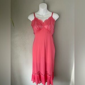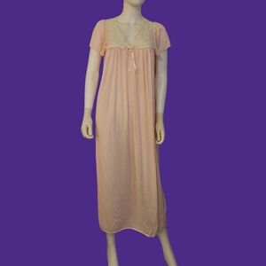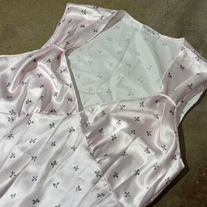 Vintage Vanity Fair Bow Print Pale Pink Nighty Nightgown Satin Slip Dress 70s