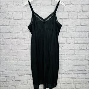 Vintage Vanity Fair Full Slip Black Butterfly Lace Detail Size 42 Midi Dress