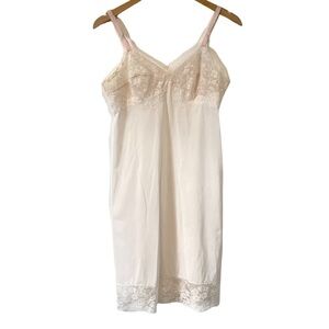 Vintage Vanity Fair Full Slip Blush Pink Lace 100% Nylon Nightie Womens Small 36