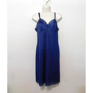 Vintage Vanity Fair Full Slip Dress Womens 34 Blue Lace 29 In. Adj Straps Nylon