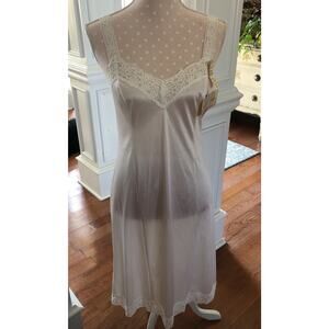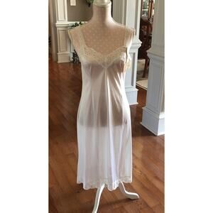 Vintage Vanity Fair Full Slip Gown “No Ride Up” White Nylon Lace Women’s Size 32