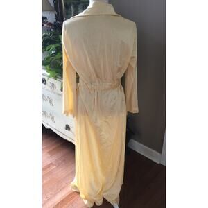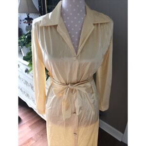 Vintage Vanity Fair House Coat Robe Yellow Nylon Button Long Sleeve Size 14