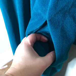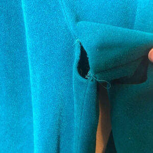 Beautiful deep teal green zip up house dress with pockets. Size small. Please note that there is a seam tear underneath one of the arms. It's an easy fix for anyone with basic sewing skills (sorry, that's not me!). Otherwise, in very good used condition.