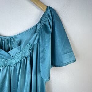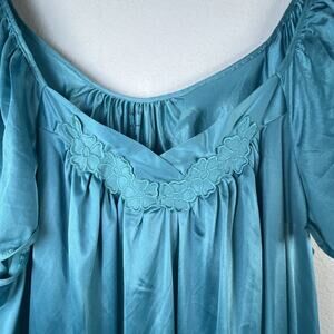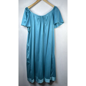 Vintage Vanity Fair L Blue Turquoise Sexy Full Dress Nightgown Gown Lace Comfort