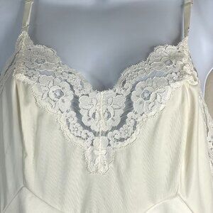 Vintage Vanity Fair Lace Trim Chemise Slip Lingerie 34 Ivory Adjustable Strap