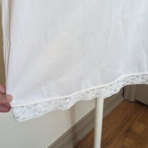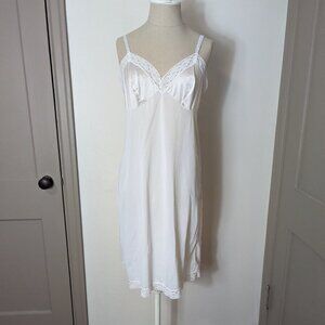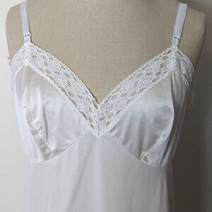 Vintage Vanity Fair Lace Trim Slip Adjustable Strap Satin Cream White Pin Up Rockabilly Lingerie