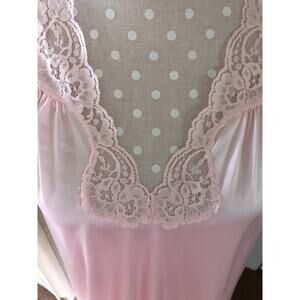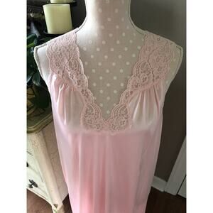 Vintage Vanity Fair Long Sweet Nightgown Retro Glam Nylon Lace Baby Pink Medium
