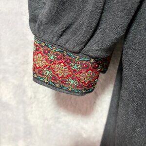 Vintage Vanity Fair Nightgown Womens XL Gray Velvet Velour Embroidered Zip Coat
