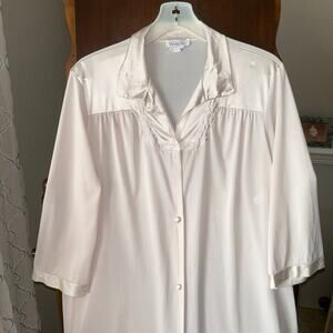 Vintage Vanity Fair Nylon Robe Womens Medium Cream Button Sheer Silky USA