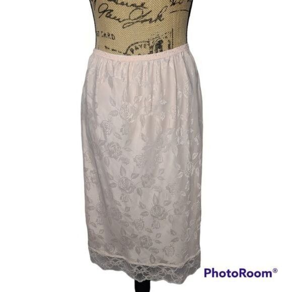 Vintage Vanity Fair Pale Pink Floral Lace Trim Skirt Slip