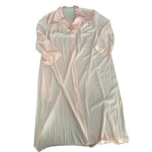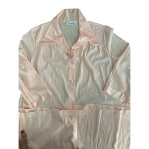 Vintage Vanity Fair Pink Champagne Button Up Pockets Sleepwear Shirt Size Medium