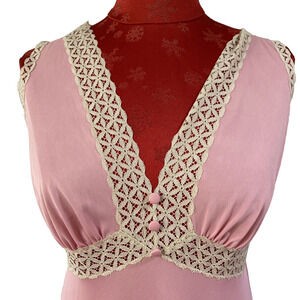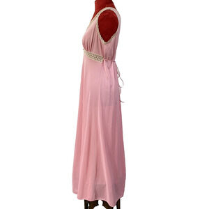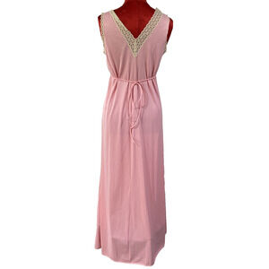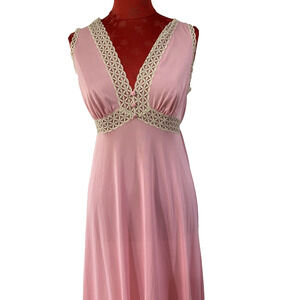 Vintage Vanity Fair Pink Nylon Maxi Night Dress Gown Lace Trim Size 32 Negligee